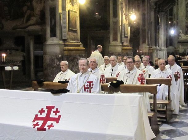 Celebrazione della S.Messa alle 19,00, seguita da una solenne Adorazione Eucaristica a cui erano presenti anche l’Ordine di Malta e l’Ordine del Santo Sepolcro, con una nutrita rappresentanza di dame e cavalieri, donati e volontari accompagnati dai loro familiari. Un appuntamento per loro di portata davvero storica, al quale non potevano assolutamente mancare visto che sono Associazioni di subcollazione pontificia, canonicamente dipendenti dalla Santa Sede. Tutti uniti nella preghiera, quindi, per testimoniare concretamente il loro particolare affetto e la grande riconoscenza al Pontefice.