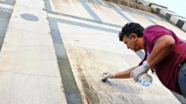 Per la rimozione dei graffiti sono stati impiegati solventi e gel specifici, formulati ad hoc.