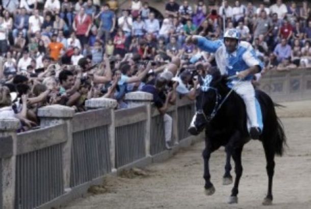 Alle 19 si corre il palio, il corteo storico entrerà in Piazza del Campo alle 16.50, preceduto dalla tradizionale carica del drappello dei carabinieri a cavallo. L’uscita delle contrade dall’entrone per correre il Palio è fissata per le 19. Da questa mattina sono definitive le accoppiate fantino-cavallo già viste nel corso delle prove: Johnatan Bartoletti detto «Scompiglio» su Lo Specialista nella Lupa; Silvano Mulas detto «Voglia» su Phalena nella Chiocciola; Giuseppe Zedde detto «Gingillo» su Naikè nell’Aquila; Luigi Bruschelli detto «Trecciolino» su Oppio nel Nicchio; Alessio Migheli detto «Girolamo» su Polonski nella Torre; Sebastiano Murtas detto «Grandine» su Porto Alabe nella Tartuca; Giovanni Atzeni detto «Tittia» su Morosita Prima nell’Onda; Francesco Caria detto «Tremendo» su Osvaldo nell’Oca; Antonio Siri detto «Amsicora» nel Bruco e Luca Minisini detto «De» su Nicholas de Pedra Ulpu nella Selva.