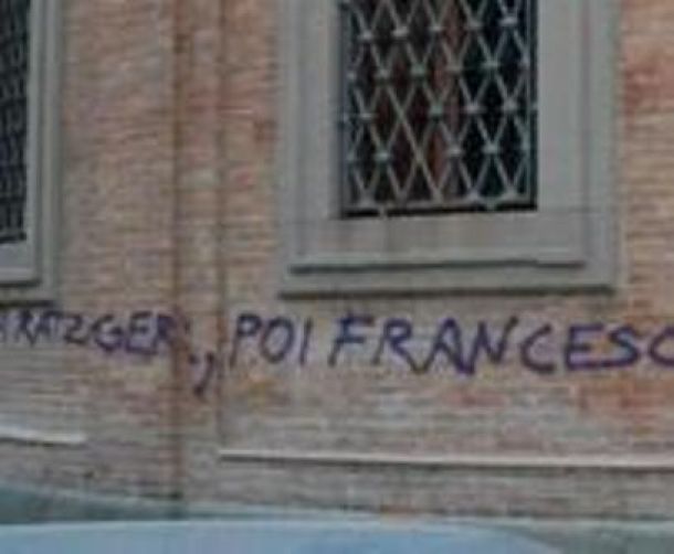 LIVORNO – «Ratzinger e poi Francesco, i bambini sempre adesco» e insulti a preti e suore cattolici. E’ la scritta comparsa sul retro della cattedrale di Livorno, vergata con una bomboletta spray nera da qualche anonimo. La frase si estende per una decina di metri sulla parete esterna della parte posteriore del Duomo.
