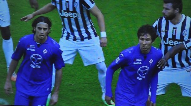 CUADRADO – Il via in una cornice inebriante: Torino inondata di sole, mentre dalle Alpi scende ancora una brezza frizzante che ha accarezzato la neve prima di soffiare sullo Juventus Stadium. Montella manda in campo Mario Gomez dall’inizio: in campionato non succedeva dal 15 settembre, giorno del maledetto infortunio di Marione contro il Cagliari. Alla sua destra Cuadrado, a sinistra Vargas. E’ sempre rovente la polemica per l’ingiusta squalifica a Borja Valero. In bianconero manca Pirlo. Sulla Juve pesa lo schiaffo, bruciante, del 4-2 dell’andata, a Firenze. E il clima non è alleggerito dalla polemica Agnelli-Della Valle, anche per il predominio su Rcs-Corriere della Sera.