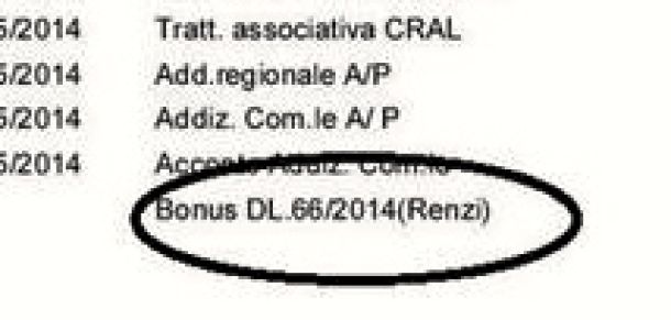 PRATO – Ai dipendenti del Comune di Prato sono arrivate tempestivamente le buste paga comprensive del bonus di 80 euro voluto dal governo. Ma nella distinta delle voci che compongono la retribuzione, alla voce 80 euro, accanto al numero del decreto: DL. 66/2014, tra parentesi è scritto il nome di Renzi, forse per ricordare chi  ha voluto erogare tale bonus. Da un comune governato dal centrodestra non ci saremmo aspettati una simile gaffe, soprattutto nell’imminenza delle elezioni.