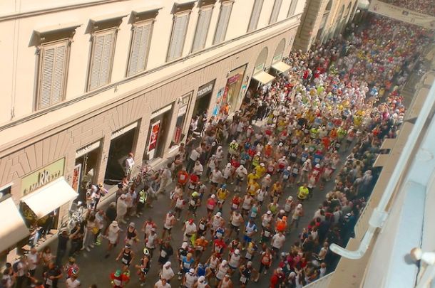 Per tutti, alla partenza e ancor prima, attorno all’ora di pranzo, una festa collettiva nel nome dello sport: giovani e adulti, uomini e donne, molti dei quali romagnoli, ma anche fiorentini, hanno chiacchierato, familiarizzato e ritirato i pettorali per la corso in piazza Strozzi. Poi tutta l’area attorno a Palazzo Strozzi e sotto gli archi di piazza della Repubblica è diventata una colorata kermesse di vestizioni e preparazioni ginniche di riscaldamento, prima della gara vera e propria.