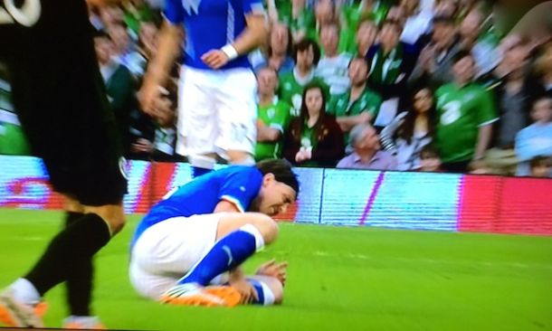 LONDRA – Brutta serata. L’Italia rischia sconfitta e figuraccia con la modesta Irlanda, ma soprattutto perde Montolivo. Povero Riccardo: sfortunatissimo in un contrasto con il rude e deciso Pearce. Che gli ha provocato la rottura della tibia. Spaventoso! Addio spedizione in Brasile. E non va bene nemmeno al suo sostituto naturale, Aquilani, messo fuori causa da una testata di Ward. Con conseguenti capogiri e conati di vomito. Risultato? In ospedale anche lui e spazio a Parolo.
