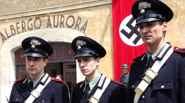 FIRENZE – Non furono lasciati subito liberi gli ostaggi di Fiesole, dopo la fucilazione dei tre carabinieri che eroicamente si erano consegnati ai tedeschi nell’agosto 1944 nel tentativo di salvarli. Scivola nel finale, con questo infortunio storico, la pur attenta ricostruzione di «A testa alta», la fiction televisiva andata in onda ieri sera 2 giugno su Rai1, dove si vedono gli ostaggi che si abbracciano sorridenti dopo il (mai dato) ordine del tenente tedesco di liberarli.