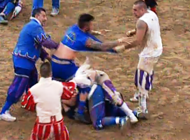 Forse qualcuno s’illude che, mostrando un ormai inutile zelo, si possa ignorare il disastro nel quale il Calcio storico è stato gettato dall’inefficienza dei suoi dirigenti? Seconda osservazione, che viene di conseguenza: insieme alle squalifiche, dovevano arrivare anche le dimissioni di chi non ha saputo gestire regolamento e espulsioni, arrivando a mettere in discussione la prima partita soltanto dopo che era stata sospesa la seconda. O forse c’è chi s’illude che la chiosa un po’ patetica della commissione disciplinare, che mette il dito sulle lacune regolamentari, possa servire da salvagente? Anche le lacune del regolamento sono da ascrivere alla dirigenza, che ha messo mano tante volte alle regole (tanto da trasformare il Calcio storico in una specie di pallavvelenata), dimenticando, irresponsabilmente, d’intervenire per rendere meno complicate le espulsioni.