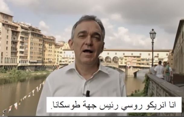 In sintesi Rossi rivolge un appello ai turisti russi, arabi e cinesi a visitare la Toscana, direttamente nella loro lingua. Naturalmente con i sottotitoli, benvenuto a parte.Quindi «Mienià zavut Enrico Rossi» per i russi, «Ni hai» per i cinesi, e «Ana Enrico Rossi, rai gehata Toscana» per gli arabi, per iniziare un viaggio verso Firenze, Pisa e Siena, ma anche verso la rinnovata via Francigena, lunga ben 370 km con oltre 1.200 strutture ricettive e 200 interventi di animazione nel 2014 per accogliere pellegrini e non solo.