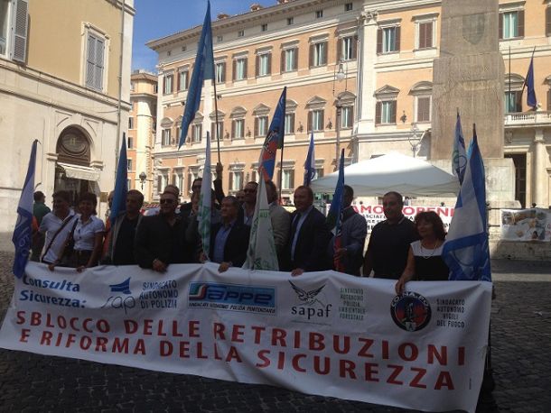 ROMA – Dopo gli incontri con rappresentanti del Governo e con Silvio Berlusconi, i Sindacati di polizia, agenti carcerari, forestale e vigili del fuoco, riuniti nella Consulta sicurezza (Sap, Sappe, Sapaf e Conapo) confermano lo sciopero di 3 ore per domani 23 settembre. Non sono soddisfatti delle promesse ricevute dal Sottosegretario Lotti e dai ministri. Tanto più che il ministro Pinotti, rispondendo a un’interrogazione parlamentare, qualche giorno fa aveva candidamente riconosciuto che la Difesa, per la parte di sua competenza, non aveva ancora individuato i fondi necessari per recuperare la parte stipendiale bloccata da restituire ai dipendenti. Quindi la conferma dello sciopero, le cui motivazioni sono riassunte in questo comunicato del Sap, che vale per tutte le sigle associate e accomunate nello sciopero, anzi nell’astensione dal lavoro per 3 ore, dalle 11 alle 14 in tutti gli uffici centrali e periferici.