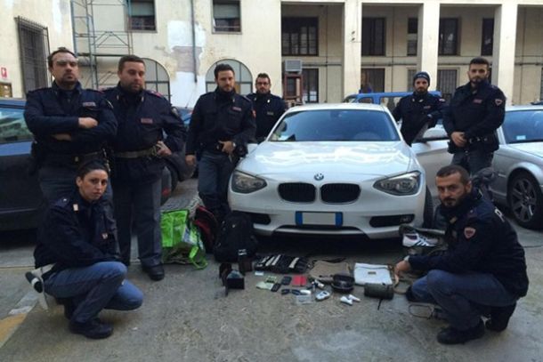 Nel giro di poco la vettura è stata individuata in sosta tra via Paisiello e via Mercadante, con il cofano ancora caldo. Mentre le ricerche proseguivano gli agenti hanno visto tre uomini che stavano correndo verso l’edificio abbandonato di via Bausi. All’interno del covo è stato ritrovta gran parte della refurtiva oltre a una secondo auto rubata un Hunday Coupè di cui era stato denunciato il furto prima di Natale ed un telefono cellulare grazie al quale gli agenti sono risaliti ad una quarta vittima, una signora di 74 anni rapinata con le stesse modalità in Via Giovan Battista Vico.