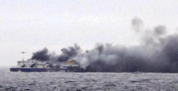 Traghetto in fiamme, un morto. Bambini in ipotermia. Nave agganciata da rimorchiatore