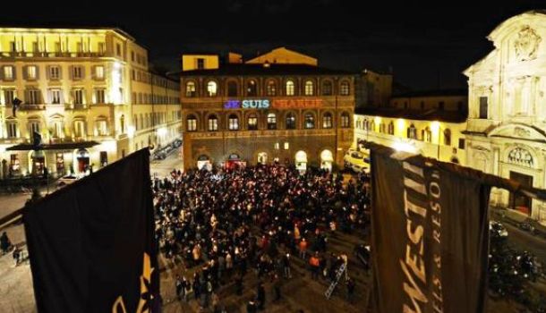 Charlie Hebdo, fiaccolata a Firenze. L’ambasciatrice di Francia: «Da qui dico grazie a tutta l’Italia»