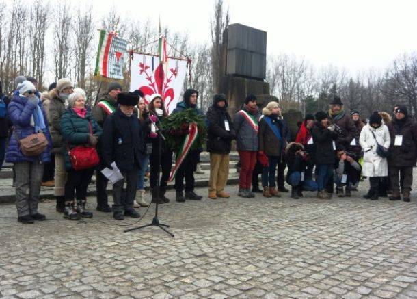 da BIRKENAU (Polonia) – «Giancarlo Antipoli di anni 4, Fiorella Calò 5 anni, Aureliano Calò 7 anni, Nedo Fiano 19 anni, Primo Levi 25 anni…». Dopo aver proceduto in corteo, a coppie arrivano davanti ai microfoni, gli studenti delle scuole toscane. E, di fronte al Memoriale dello sterminio di Auschwitz-Birkenau, scandiscono nome ed età di un deportato ebreo, o rom, o sinti, o detenuto politico entrato nel lager e, nella stragrande maggioranza dei casi, mai tornato. Poi Ugo Caffaz e l’assessore regionale Anna Rita Bramerini parlano ai ragazzi. E infine, dopo la deposizione di una corona di fiori, viene recitata una preghiera in lingua Romanés dei rom e sinti; una preghiera in italiano di padre David Maria Turoldo; e viene cantata in ebraico una canzone di preghiera dall’artista Enrico Fink.