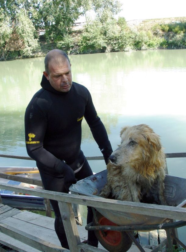 Il salvataggio di un cane da parte dei carabinieri sommozzatori