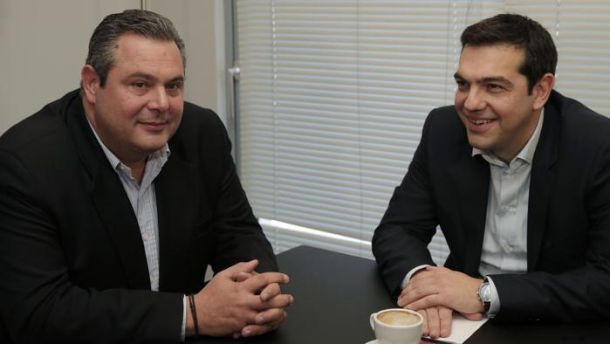 Una «strana coppia», quella Tsipras-Kammenos, che nasce dal comune rifiuto del rigore imposto da Bruxelles, ma preoccupa non pochi analisti che vedono fra Tsipras e Kammenos più punti di attrito che non d’intesa. E’ come se in Italia Vendola e Sel si alleassero con Salvini e la Lega, ipotesi irrealizzabile al momento, ma chissà, mai dire mai.