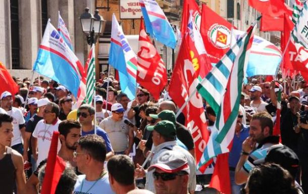 I sindacati hanno scelto questo luogo in segno di solidarietà ai 193 lavoratori messi in mobilità dall’azienda per cessazione di attività.