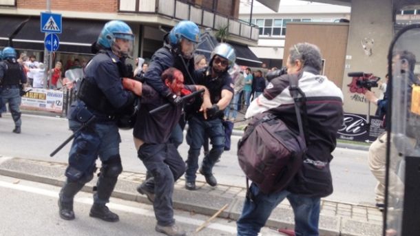 I partecipanti alla protesta hanno sfondato il cordone protettivo della polizia che ha reagito a colpi di manganellate. Almeno 2 i manifestanti che sono rimasti feriti: si tratta di padre e figlio. Portati in ospedale con l’ambulanza, uno di loro, il figlio, è stato sottoposto a fermo per resistenza a pubblico ufficiale. E sarebbero una decina i contusi.