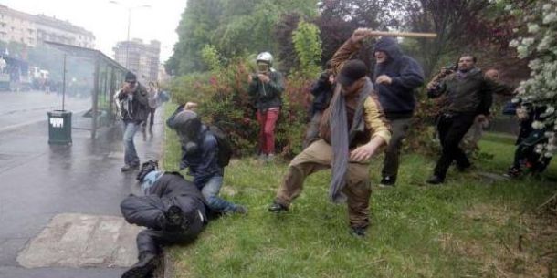 MILANO – Dopo aver analizzato immagini di telecamere e foto dell’episodio, la polizia ha identificato e denunciato il giovane che, a Milano per il corteo No Expo, aveva partecipato all’aggressione violenta, con bastonate, di un dirigente di polizia: si tratta di un appartenente al collettivo milanese “Proprietà pirata riot club”. Le polemiche sui disordini di Milano, gli assalti e i lanci di oggetti ai comizi di Salvini, i ripetuti scontri con le Forze dell’ordine hanno confermato che in tutte le manifestazioni violente i protagonisti principali sono stati e continuano ad essere esponenti dell’autonomia e dell’anarchia.