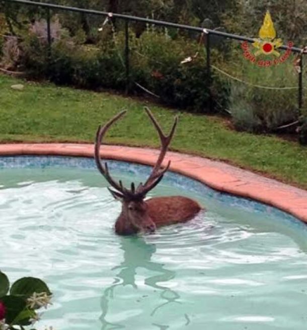 Pistoia, cervo cade in una piscina: salvato dai vigili del fuoco
