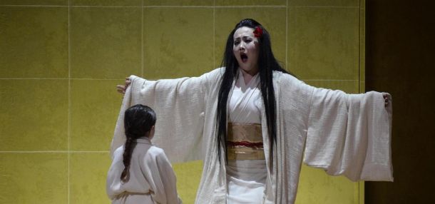 L’allestimento è nuovo, in coproduzione con la Fondazione Teatro Petruzzelli di Bari, e la regia è affidata a Fabio Ceresa (lo stesso dei «Puritani» di Bellini andati in scena nell’ultima stagione invernale), che ambienta la vicenda in un Giappone idealizzato dal simbolismo calligrafico di Ogata Korin. Uno scenario aperto, con una passerella proiettata verso l’infinito, nel quale Suzuki, dotata di lunghi capelli bianchi come un demone nipponico, prima difende Butterfly dagli attacchi dello zio bonzo e poi le offre, avvolta nel velluto rosso, la katana per il suicidio finale (mentre nel libretto originario Butterfly allontana risolutamente Suzuki, che vorrebbe restare presaga della sventura, e prende il coltello da sola).