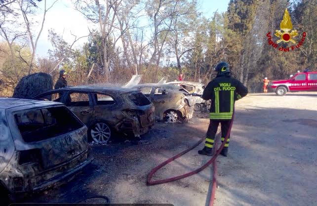 in sosta prima che i vigili del fuoco riuscissero a domare il rogo. Sul posto sono intervenuti anche i carabinieri. Non ci sono feriti.