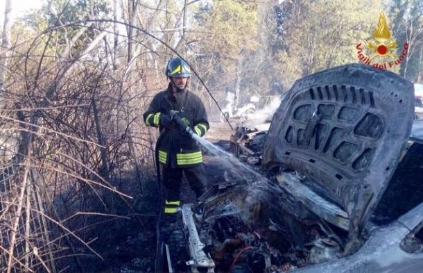 San Miniato: un fuoco di sterpaglie distrugge 4 auto in un parcheggio