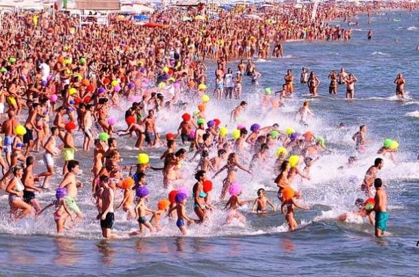 Nel primo pomeriggio feste in spiaggia, concorsi a premi, fitness e animazione in tutti gli stabilimenti balneari di Lido. Poi, alle 17.30, al passaggio dei deltaplani dalla Fossa di Montrone fino alla Fossa dell’Abate (dal confine con Pietrasanta a quello con Viareggio) tutti i partecipanti, parrucca in testa, hanno effettuato il tuffo, creando una sorta di onda colorata lunga qualche chilometro.