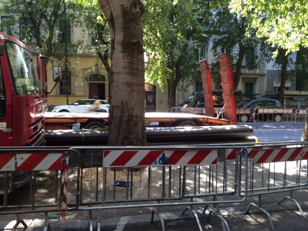 VIALE DON MINZONI – I residenti dei numeri lato dispari del tratto da Via Pascoli alla ferrovia hanno trovato la lieta sorpresa di un gigantesco tubo che, senza alcun preavviso da parte del Comune agli abitanti interessati, blocca l’accesso dei passi carrabili. Il cartello indica termine dei lavori il 9 settembre, ma già gli interventi sono partiti in ritardo, per cui la conclusione è indefinita. I proprietari in ferie, ignari del fatto, sanno chi ringraziare quando si troveranno nell’impossibilità di far uscire le auto parcheggiate all’interno degli spazi di loro proprietà. Ma anche chi è riuscito a tirar fuori il veicolo non saprà dove parcheggiarlo. I lavori fanno sparire i posto auto di quel tratto di viale: ci voleva tanto ad avvertire i condomini interessati e offrire magari un parcheggio in convenzione gratuita all’interno del Parterre? Ma il Comune, evidentemente, non è molto sensibile a questi fondamentali aspetti. Inoltre gli anziani sono costretti a percorrere centinaia di metri per trovare il primo cassonetto utile dove gettare l’immondizia.