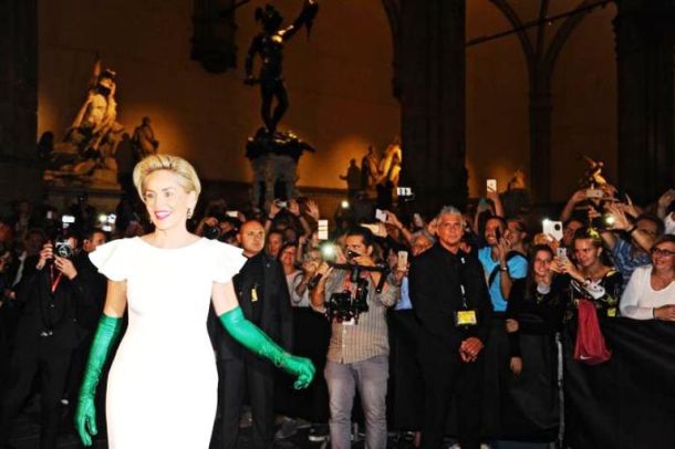 FIRENZE – Ha lasciato Firenze senza fiato, Sharon Stone. Prima perché non arrivava, perché si faceva attendere oltre ogni ragionevole ritardo. Poi perché è ancora bella e sfolgorante come ai tempi di “Basic Instint”. Così, quando è finalmente apparsa in piazza della Signoria, la festa è cominciata. La cena di gala e l’asta benefica della Celebrity Fight Night, evento charity portato in Italia da Andrea Bocelli per raccogliere fondi a favore della Andrea Bocelli Foundation e del Muhammad Ali Parkinson Center, è entrata nel vivo. E’ arrivata, Sharon, poco prima delle 21 sul red carpet allestito all’ingresso di Palazzo Vecchio dove si svolge la serata, organizzata con le griffe fiorentine Stefano Ricci e Ermanno Scervino.
