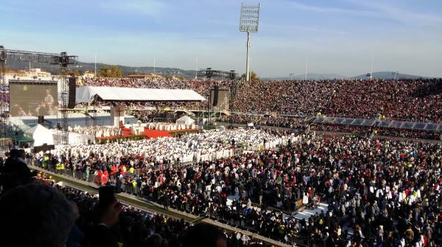 Stanco? Non troppo. Preoccupato? Certamente sì. Dev’essere per questo, ossia per la pena che continua a portare dentro, che al momento di salutare Firenze, alla fine di un 10 novembre che resterà nella storia della città e della Chiesa, Papa Francesco ha mormorato due volte: “Pregate per me”. E le cinquantamila voci del Franchi si sono unite in un lungo, appassionante coro di sì. Un coro univoco, carico d’emozione, che vale come una garanzia. Firenze è rimasta rapita e colpita dalla capacità comunicativa del Papa. Che al Convegno ecclesiale nazionale ha detto di preferire una Chiesa “accidentata e sporca” a una Chiesa “malata e barricata in casa”. E magari capace di andare a braccetto con il potere. Frasi secche, pronunciate durante l’intervento in Santa Maria del Fiore, in mattinata. Che i vaticanisti hanno interpretato come un atto di chiusura e di superamento del “ruinismo” e del “bertonismo”. Ossia il periodo del dominio dei cardinali Ruini e Bertone. Francesco ha richiamato la ricchezza del cristianesimo anche popolare, anche quello uscito dalla penna di Giovanni Guareschi. Gli piacciono Peppone e don Camillo: perché il prete di campagna era vicino alla gente, lottava con spirito genuino per i parrocchiani, fino a far a botte con il sindaco comunista.