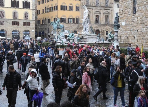 FIRENZE – Il centro della città preso d’assalto dai turisti per il ponte dell’Immacolata, ma tra ingenti misure di sicurezza. Lunghe code (almeno 2 ore) per entrare agli Uffizi, alla Basilica di Santa Croce e nei principali musei; affollatissima piazza della Signoria, con le forze dell’ordine schierate a presidiare i monumenti principali e gli obiettivi sensibili. Molta gente anche in centro a curiosare nei negozi; ci si reca a far compere in anticipo rispetto ai saldi che cominciano tradizionalmente a inizio gennaio. Turisti e fiorentini quindi non hanno paura di attentati e si sentono rassicurati dalla presenza degli uomini e donne in divisa che presidiano in forze, ma discretamente, la città.
