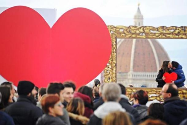 Firenze, San Valentino 2016: al Piazzale Michelangelo pedonale il bacio di mille innamorati