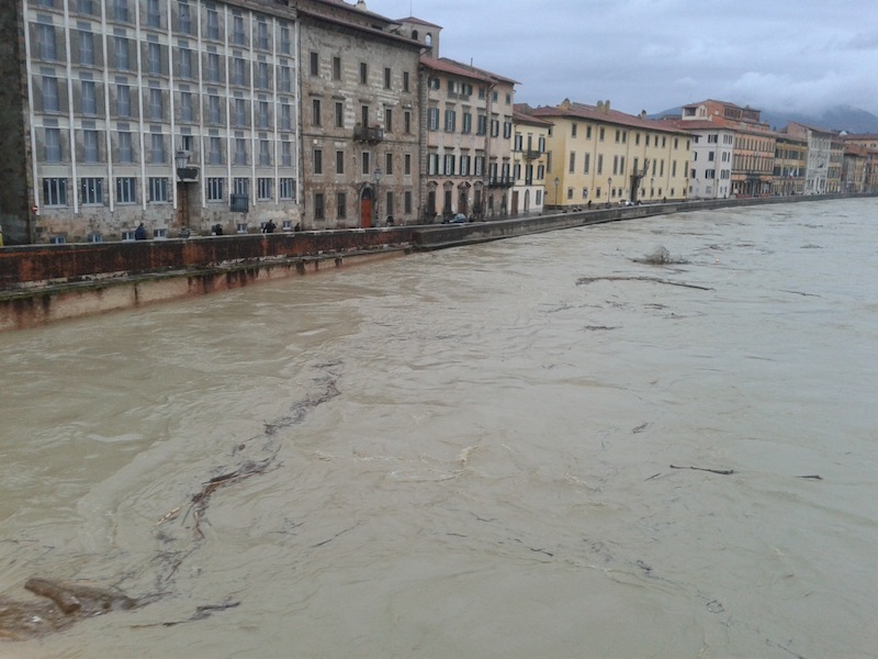 Arno in piena a Firenze e Pisa. Ma sotto il livello di guardia. Toscana: allerta meteo fino alle 17 di mercoledì 17
