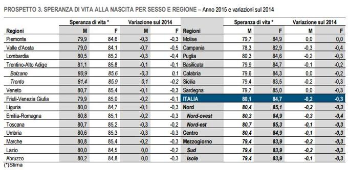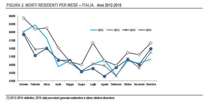 VITA – Per l’Istat, la crisi economica sembra aver prodotto un effetto negativo persino sulla speranza di vita, che nel 2015 è diminuita. Per gli uomini oggi si attesta a 80,1 anni (era di 80,3 del 2014), per le donne a 84,7 anni (era di 85 anni). Un peggioramento attribuito dai tecnici dell’Istituto di statistica a un picco di mortalità: i morti sono infatti stati 653mila nel 2015, 54mila in più dell’anno precedente (+9,1%). Il tasso di mortalità, pari al 10,7 per mille, è il più alto tra quelli misurati dal secondo dopoguerra in poi. L’aumento di mortalità risulta concentrato nelle classi di età molto anziane (75-95 anni). Dal punto di vista demografico, il picco di mortalità del 2015 è in parte dovuto a effetti strutturali connessi all’invecchiamento e in parte al posticipo delle morti non avvenute nel biennio 2013-2014, più favorevole per la sopravvivenza.