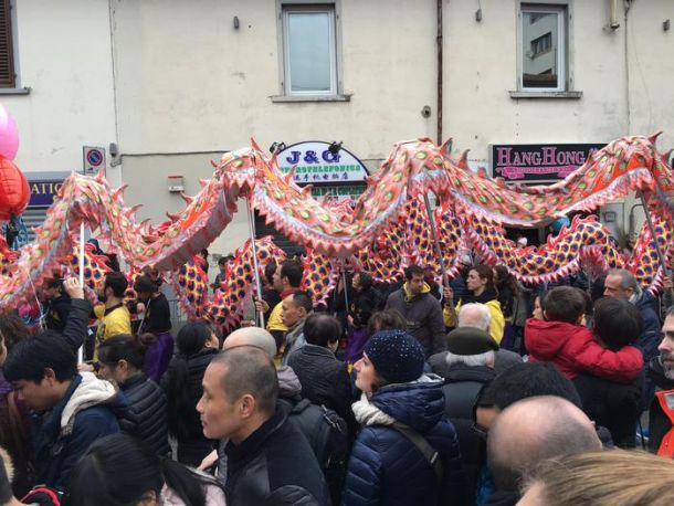 PRATO – Più di mille persone – una folla composta da italiani e cinesi – si sono ritrovate stamani nelle vie della Chinatown pratese per assistere alla tradizionale sfilata del Dragone nell’ambito delle celebrazioni per il capodanno cinese. La sfilata ha preso il via da piazza del Mercato Nuovo intorno alle 9,30. Il corteo ha percorso via Filzi fino a via Scarlatti per puoi tornare verso il centro storico, dove il dragone ha sfilato in piazza del Comune