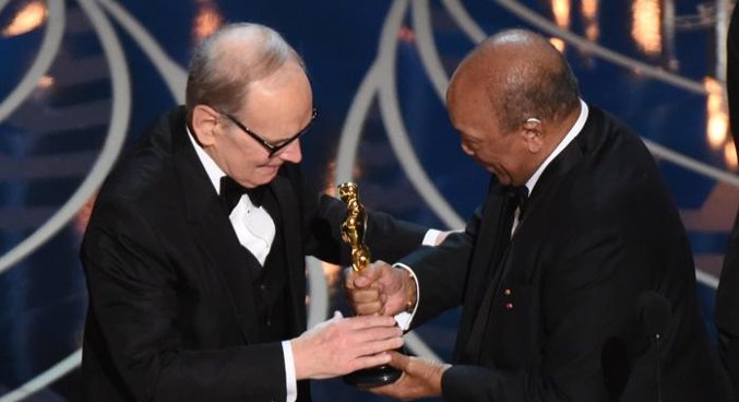 LOS ANGELES – Dopo il riconoscimento alla carriera ricevuto nel 2006, finalmente Ennio Morricone, alla sua sesta nomination, è riuscito nell’impresa di portare a casa il suo primo Oscar per la migliore colonna sonora originale per «The Hateful Eight» di Quentin Tarantino. Fra i primi a congratularsi il premier Renzi che in un tweet ha scritto: «Grandissimo Maestro, finalmente! Morricone #orgoglio #Oscars2016».