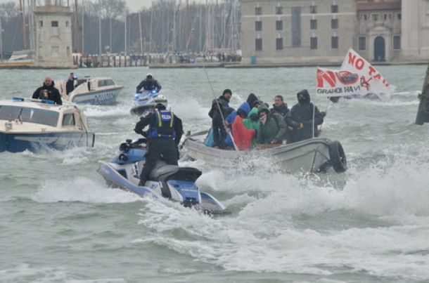 PROTESTA NO TAV – In mattinata si era svolta una contestazione proprio contro la tav, senza particolari incidenti. I manifestanti erano arrivati a Venezia in circa 500 da tutto il nord Italia per esprimere la loro ferma contrarietà alle grandi opere, Tav e grandi navi in primis. Il capoluogo veneto ha sancito così una sorta di gemellaggio tra i No Tav piemontesi e i sostenitori contro le navi in laguna, per ribadire il loro dissenso perché, come si legge in uno dei tanti cartelli: “Il tribunale dei popoli condanna il sistema delle grandi opere inutili ed imposte”. Decine di bandiere “No Tav”, musica a tutto volume e vari cartelli – come “No devastazioni e saccheggio. No grandi navi. No Tav”, “Preserviamo il nostro futuro difendendo scuole e territori” – hanno accompagnato la manifestazione dalla stazione ferroviaria fino alle Zattere passando davanti all’Università veneziana, lungo un percorso di circa cinque chilometri, presidiato dalle forze dell’ordine e dalla parte opposta della città (a separare il Canal Grande) rispetto alla zona dove era previsto il vertice. Il sindaco di Venezia Luigi Brugnaro ha commentato: «E’ stata una manifestazione ordinata, li abbiamo solo un po’ innaffiati quando hanno cercato di superare la zona rossa. Tutto a posto – aggiunge – non sono stati fatti atti di vandalismo. La democrazia così funziona bene».