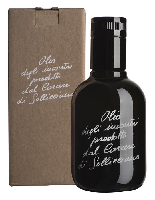 Così, dopo il vino Gorgona arriva l’Olio degli Incontri, dal nome del giardino all’interno di Sollicciano progettato da Giovanni Michelucci come luogo d’incontro tra i reclusi e le loro famiglie. Le bottiglie di olio (da 250 ml) prodotte in questo primo anno sono 300: una parte è rimasta a disposizione del carcere, un centinaio, spiega Frescobaldi, è stato donato a personalità e istituzioni, tra cui il Papa, il Capo dello Stato Mattarella e il premier Renzi. Le restanti si potranno acquistare contattando direttamente la Frescobaldi a fronte di un contributo di 19 euro.