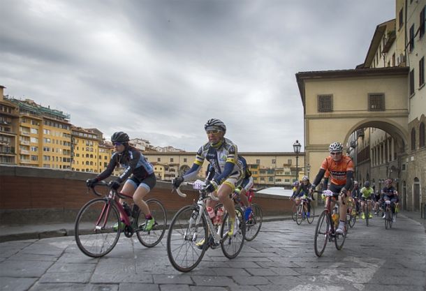 FIRENZE – Torna la Granfondo Firenze De Rosa e porta per la prima volta nella storia una corsa ciclistica sul Ponte Vecchio: domenica 17 aprile, nell’ambito di Florence Bike Festival, i circa 3000 corridori in gara partiranno da piazza Signoria per poi uscire dalla città ed arrampicarsi sulla collina di Fiesole. Arrivo sul ‘muro’ di via Salviati, reso celebre dai Mondiali di Ciclismo 2013. La manifestazione, che richiama anche ciclisti dall’estero, per la prima volta parte dal cuore della città, da via Calzaiuoli. Il via alle 8.30, poi il serpentone delle bici si snoderà verso il lungarno per attraversare Ponte Vecchio. Ritorno lungo il lago di Bilancino, fino alle colline di Vaglia, Vetta Le Croci (all’Olmo) e arrivo sullo strappo di via Salviati dopo 118 km. Lungo il tracciato le strade saranno chiuse solo per 15 minuti per permettere il passaggio del gruppo di testa. Trattandosi di giornata di referendum, il percorso è stato appositamente studiato per non ‘disturbare’ il diritto di voto.