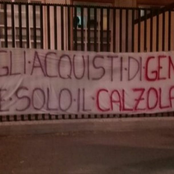 FIRENZE – Polemico striscione dei tifosi della Fiorentina affisso, e poco dopo rimosso, sui cancelli dello stadio Franchi contro i vertici della società viola. «Con gli acquisti di gennaio vince solo il calzolaio», è il testo dello striscione firmato dal viola club Settebello, uno degli storici raggruppamenti dei sostenitori della Fiorentina. Il riferimento, oltre all’attività imprenditoriale dei Della Valle, è alla serie negativa della Fiorentina, culminata nel 2-0 inflitto ieri dall’Empoli, e alla campagna acquisti giudicata deludente.