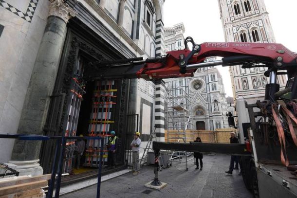 Nella notte tra il 15 e il 16 aprile lo spettacolare trasporto all’Opificio delle Pietre Dure – la porta, bronzea, pesa circa 8 quintali, è alta 4,94 metri e larga 2,95 – che avrà il compito di riportare alla luce quello che resta della splendida doratura originale e riparare una grossa crepa causata dall’alluvione del 1966. Dopo il restauro la Porta non tornerà nella sua sede originale, dove è stata per 680 anni: sarà infatti collocata nel nuovo Museo dell’Opera del Duomo a Firenze accanto alla Porta del Paradiso e alla Porta Nord di Lorenzo Ghiberti. Per il Battistero sarà realizzata una replica ad arte come in precedenza già fatto per le due altre porte.