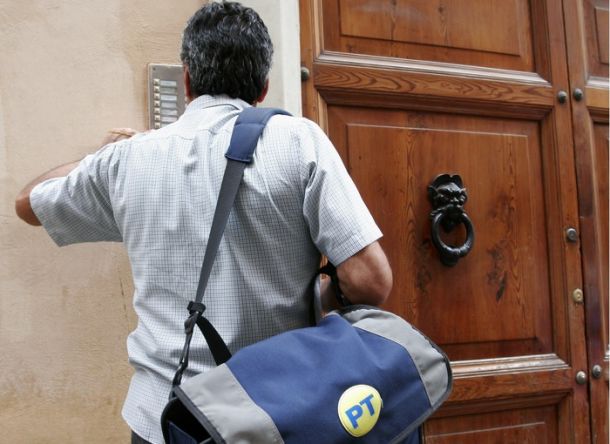 Postino citofona con la borsa delle lettere