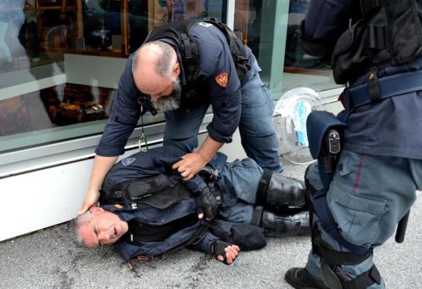 Brennero: battaglia fra anarchici, black block e Forze dell’ordine al confine. Un poliziotto ferito, il paese devastato (video)
