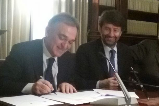 ROMA – Il presidente della Regione Toscana, Enrico Rossi e il ministro dei beni culturali, Dario Franceschini, hanno firmato oggi pomeriggio a Roma negli uffici del Mibact, l’Accordo di valorizzazione e promozione dei beni culturali in Toscana e per la costituzione del Sistema museale regionale, il primo del genere tra Governo e una regione.