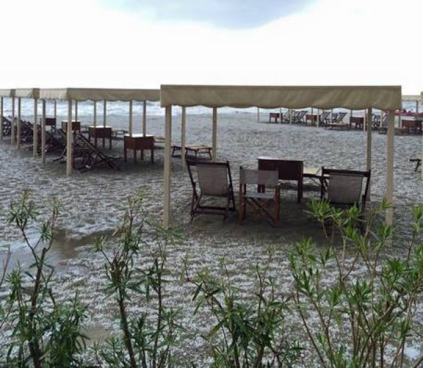 Massa: la grandinata ha imbiancato la spiaggia. Violento temporale, strade allagate