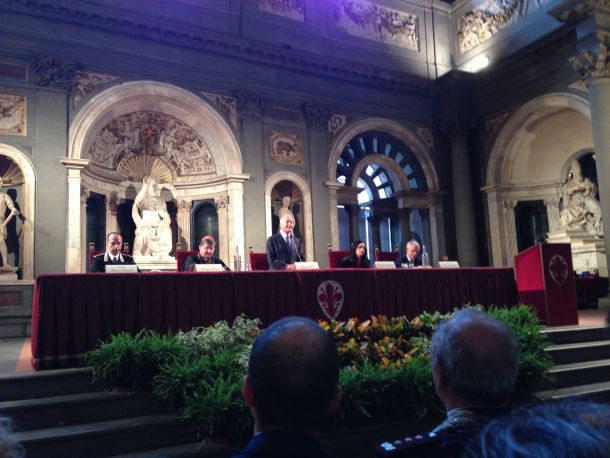 Alla presentazione sono intervenuti Gianni Letta, in qualità di moderatore, il ministro della Difesa Roberta Pinotti, il sottosegretario di Stato alla Presidenza del Consiglio Luca Lotti, il generale Tullio Del Sette, il cardinale Giuseppe Betori, il sindaco di Firenze Dario Nardella, il direttore del Corriere della Sera Luciano Fontana, Martina Giangrande e l’autore del libro.