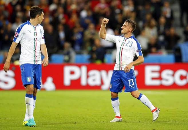 EDER – Fuori Lukaku ed entra Origi, giovanissimo talento belga. Gli azzurri si fanno cogliere ancora in contropiede: provvidenziale Eder che si sacrifica bloccando l’avversario in fuga e rimediando il giallo. Conte lo toglie per inserire Ciro Immobile. E non basta: De Rossi soffre un po’. Esce: lo sostituisce Thiago Motta. Il Belgio ha una grande occasione con Origi che, di testa, la manda alta di qualche centimetro. Buffon s’infuria con i difensori: occhio grida. Occhio per dire che non devono perdere di vista nessuno in area. Quindi contropiede rapidissimo di Ciro Immobile: che scappa, arriva in area, lascia partire la gran botta. Che Courtois incredibilmente respinge. Poi è forcing del Belgio. I gioiellini Witsel, Origi e Fellaini spingono. Gli azzurri cercano di tenere il pallone. Lottano da operai contro i quotatissimi avversari. Candreva agganncia un pallone a destra in area, cross per Pellè che spara volo: gol. Due a zero. Incredibile ma vero, l’Italietta brutta anatroccolo diventa cigno. Anche questo è calcio azzurro.