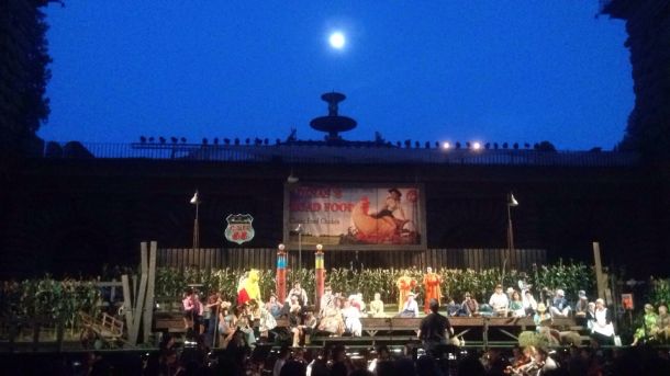 Era tanto che ci si chiedeva perché il Maggio Musicale non si riprendesse gli spazi all’aperto di Pitti-Boboli, sicuramente di maggior richiamo per i turisti (ma anche per i residenti, d’estate) di un teatro moderno ai margini delle Cascine; altro discorso sarebbe forse stato se la cavea del teatro avesse avuto un palco in grado di ospitare concerti dell’orchestra intera e opere, perché avrebbe l’attrattiva di mostrare una panorama della città da un punto di vista opposto a quello che siamo abituati a vedere dal lato di Piazzale Michelangelo. Ma, così come stanno le cose, molto meglio il fascino dell’antico a Palazzo Pitti, anche se l’acustica, si sa, all’aperto non è perfetta.