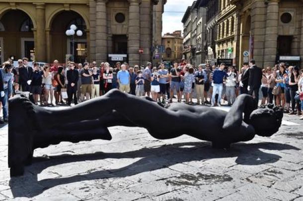 FIRENZE – Una copia del David di Michelangelo a grandezza naturale, in marmo di Carrara come l’originale ma dipinto di nero, sdraiato in piazza della Repubblica, nel cuore di Firenze: questa l’opera, simbolo della sofferenza e del lutto per il terrorismo e la violenza che flagellano il mondo, scoperta oggi nell’ambito della settimana michelangiolesca all’indomani della strage di Nizza. Realizzata da Massimo Barzagli e prestata dal museo Pecci, la scultura si chiama ‘Noi’ e resterà sul suolo della piazza fino al termine della rassegna di eventi, il 21 luglio.