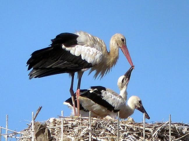 All’inizio di marzo la struttura era pronta, e in poche ore due cicogne cercano di prenderne possesso, ma la coppia del primo nido, situato a ben 800 metri di distanza, era molto territoriale e scacciava inesorabilmente gli “intrusi”. La storia si è ripetuta anche negli anni seguenti, ma nella primavera 2016 il progetto ha avuta una svolta insperata; due cicogne particolarmente tenaci sono riuscite ad eludere i controlli dell’altra coppia, ad insediarsi sulla piattaforma e a deporre le uova.
