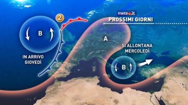 Questa perturbazione (la n°2 di settembre) giovedì trasferirà le sue precipitazioni al Nordest e coinvolgerà anche il Centro con fenomeni soprattutto tra le zone interne e il settore tirrenico; il tempo rimarrà instabile in Sardegna, specie in mattinata mentre al Sud avremo solo passaggi nuvolosi innocui. Temperature in calo in tutto il Centronord e Sardegna, anche sensibile al Nord e sul medio Tirreno dove perderemo dai 2 ai 6 gradi con la fine del caldo anomalo.